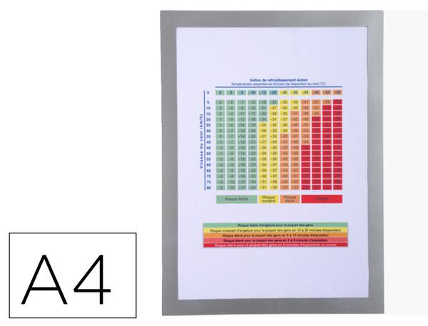 Permet d'afficher tout type de document sur un support métal comme une armoire, une porte, un panneau, un tableau blanc...Pour protéger et exposer des instructions, des notes d'information, des consignes de sécurité, des règlements, des plannings'. 4 faces verso de la pochette sont équipées d'aimants résistants, la 4ème face est accessible pour glisser si besoin les documents. Position portrait ou paysage possible. Format A4 - Coloris argent