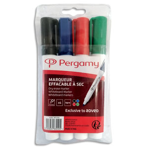 Pochette de 4 couleurs assorties : noir, bleu, rouge et vert.