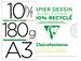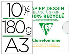 Papier dessin à grain 100% recyclé, 180g. Papier blanc recyclable et réutilisabale. La surface au grain léger est idéale pour les travaux qui nécessitent un tracé précis. La surface au grain marqué permet de donner de la profondeur à vos réalisations.