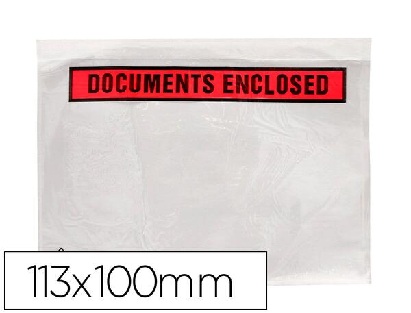 Pochettes auto-adhésives pour l'envoi de documents. Texte en anglais impression en noir et rouge. Totalement transparentes et sans fenêtre. Boîte de 100 pochettes.