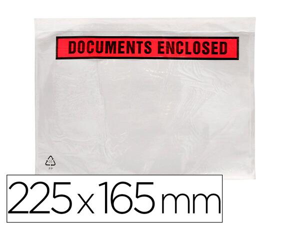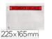 Pochettes auto-adhésives pour l'envoi de documents. Texte en anglais imprimé en noir et rouge. Totalement transparentes et sans fenêtre. Dimensions : 225 x 165 mm. Boîte de 100 pochettes.