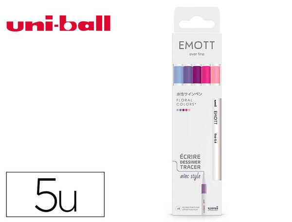 Découvrez la pochette EMOTT de 5 feutres Floral Colors, un ensemble parfait pour les amateurs de dessin et d'écriture précise. Conçus par la célèbre marque japonaise Uni Mitsubishi Pencil, ces feutres se distinguent par leur pointe fine et leur encre aux couleurs éclatantes et inaltérables. Idéaux pour tous vos projets créatifs, ils vous offriront une expérience d'écriture fluide et sans bavure.
