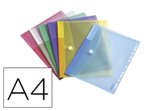 En polypropylène 20/100ème. Ouverture sur la longueur. Fermeture velcro. Perforation 11 trous. Capacité : 60 feuilles. Dimensions : 240 x 316 mm. Pour format A4. Lot de 12 unités.