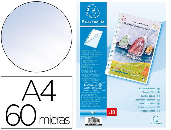 En polypropylène lisse 6/100ème. Ouverture en coin pour une insertion facile des documents. Perforation 11 trous. Pour format A4. Lot de: 10 pochettes.