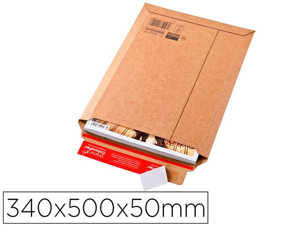 Pochette en carton ondulé ColomPac®, norme de sécurité US. Grande résistance au pliage et renforcement des arêtes sur le pourtour. Fermeture par bande adhésive. Ouverture simple et rapide avec la bande d'arrachage. Profondeur variable jusqu'à 5 cm. Dimensions : L 34 x H 50 x P 5 cm. Certifiée FSC. U.V. : la pochette carton ondulé Colompac