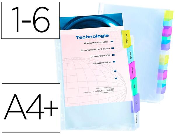 En polypropylène 8/100ème 2 en 1. Personnalisation des pochettes perforées grâce aux onglets. Livrées avec jeu d'étiquettes bristol prédécoupées. Perforation 9 trous. Pour format A4+.