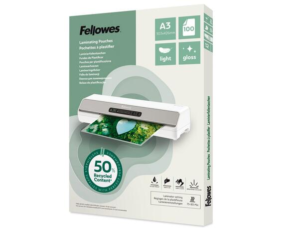Pochettes de plastification A3 usage léger fabriquées à partir de 50'% de matériaux recyclés ' paquet de 100 - Brillante