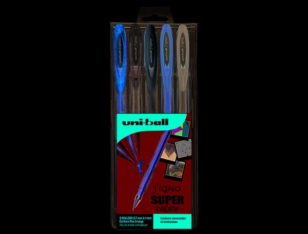 5 ROLLERS SUPER CREATIF COULEURS INTENSES ET LUMINEUSES MINE DE 0,7 A 1 MM COULEUR OR - ARGENT METALISE - BLANC - OR PAILLETE - ARGENT PAILLETE
