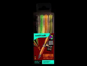 Découvrez une expérience d'écriture créative et fluide avec la pochette Uni-Ball Signo Roller Encre Gel Écriture Large Broad Créatif. Conçus pour les amateurs de stylos gel, ces rollers vous offrent une combinaison unique de couleurs métalliques et de confort exceptionnel pour des créations artistiques hors du commun.
