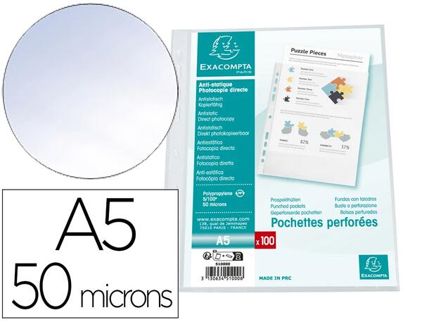 Pochettes 16,8 x 21,5 cm - Épaisseur 50 microns - Perforation 7 trous - Le lot de 100 Format à classer : A5