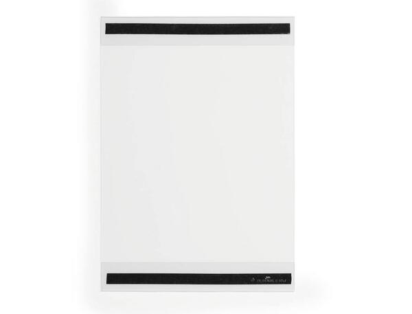 PORTE-AFFICHE RECYCLÉ - A4 MAGNÉTIQUE Porte-affiche A4 fabriqué en PET recyclé à partir d'au moins70 % (recyclage post-consommation) Affichage recto portrait sur des surfaces métalliques Fixation magnétique grâce à deux bandes magnétiques au verso Remplacement facile du document par glissement latéral Les matériaux se séparent pour permettre l'élimination et le recyclage séparés des matériaux. Sachet brochable de 2 pièces