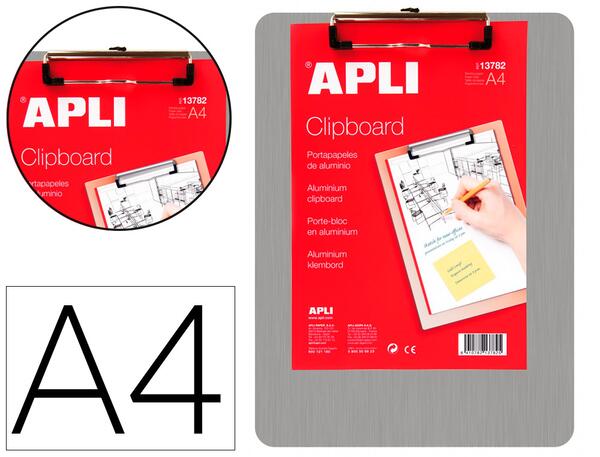 Porte-bloc pour format A4 avec plaque en aluminium et pince métallique. Dimensions : 230 x 310 mm.