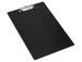Plaque en carton revêtue PVC et pince métal. Avec porte-stylo. Format A4+. Coloris noir. Dimensions : 235 x 355 mm.