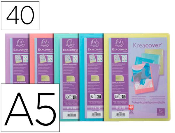 Protège-documents en polypropylène transparent. Couverture souple translucide 5/10ème avec pochette de personnalisation. Pochettes cristal lisse haute transparence. Coloris assortis : bleu pastel, corail, jaune, mauve, vert pastel.