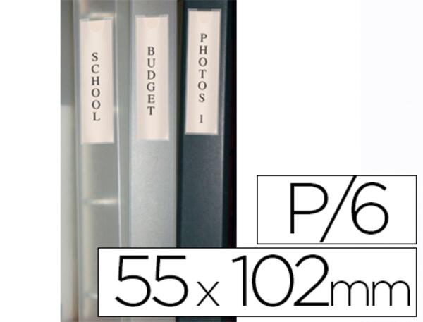 En plastique souple transparent. Adhésif. Étiquette fournie. Dimensions : 55 x 102 mm. Lot de 6 unités.
