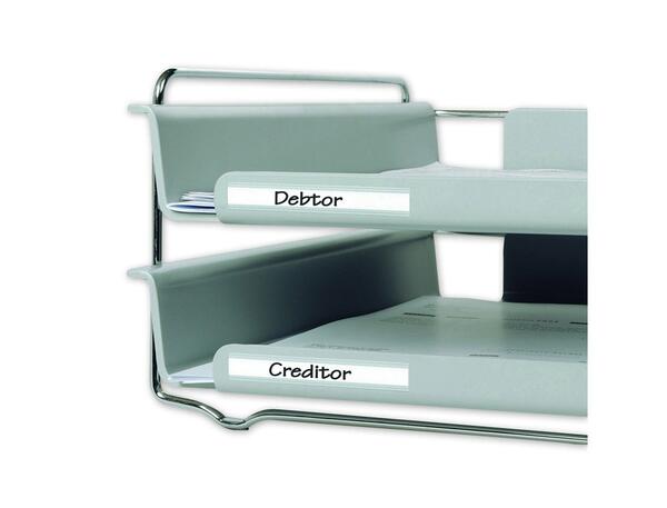 Porte-étiquettes adhésifs avec bristols personnalisables, 150x20mm La solution idéale pour les armoires de classement, rayonnages industriels, étagères de bureau, corbeilles à courrier et meubles à tiroirs. Il vous suffit de couper les porte-étiquettes à la longueur souhaitée à l'aide de ciseaux puis d'inscrire l'information voulue. Transparent 150x20mm Un sachet de 10 porte-étiquettes
