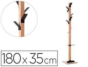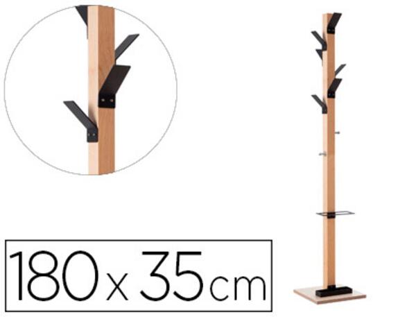 6 patères en polystyrène choc haute résistance et 2 patères en acier chromé. Fût en bois massif vernis. Sa base lui garantit une parfaite stabilité. Coupelle de récupération d'eau. Porte-parapluies inclus. Hauteur : 1,80 m. Poids : 5,7 kg. Noir'.