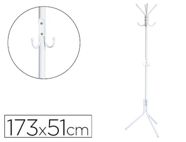 Porte-manteaux équipé de 8 patères avec support à crochets pour les sacs avec une finition arrondie pour protéger les vêtements. Dimensions : 1,73 m x 51 cm. Poids : 13,5 kg. Blanc.