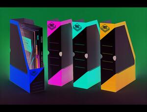 En carton blanc, impression couleur vernie. Comprend 2 trous de préhension et une double indexation. Pour format A4 jusqu'à C4 (229 x 324 mm). Livré à plat. Dimensions : 335 x 250 x 80 mm.