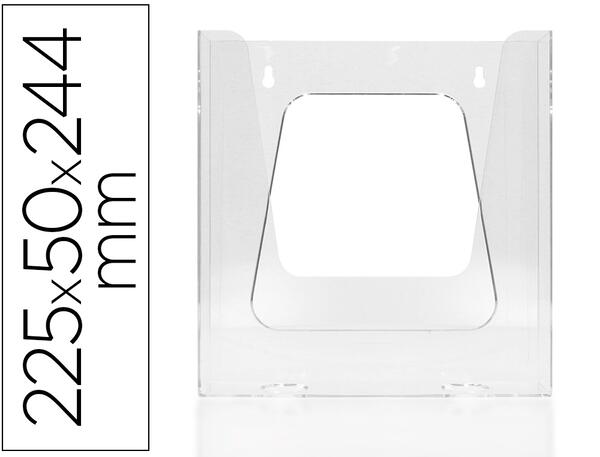 Porte-visuels en méthacrylate de grande résistance pour brochures et autres documents. Position verticale. Un compartiment. Sa couleur transparente assure une présentation attrayante et une localisation facile du contenu. Avec des trous à l'arrière pour faciliter son placement sur le mur. Format A4. Mesures : 225x50x244 mm.