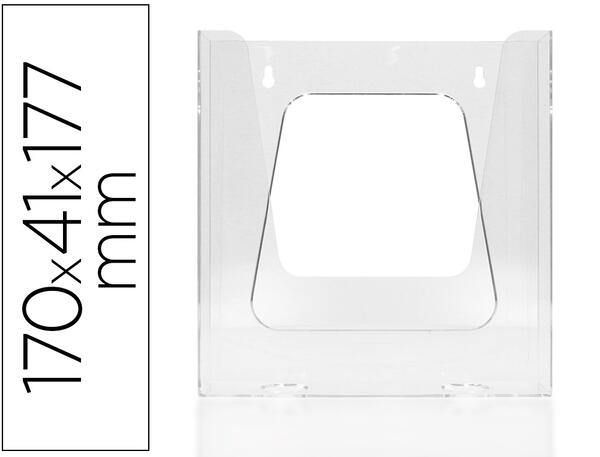 Porte-visuels en méthacrylate de grande résistance pour brochures et autres documents. Position verticale. Un compartiment. Sa couleur transparente assure une présentation attrayante et une localisation facile du contenu. Avec des trous à l'arrière pour faciliter son placement sur le mur. Format A5. Mesures : 170x41x177 mm.