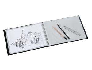 PORTE VUES 60 VUES A4 ART'VIEW POLYPROPYLENE - CREATIV'GALLERY Dimensions : 33X24X2CM Pour documents A4 Format paysage, à l'italienne Ouverture 180° Intérieurs 40µ Lisses Polypropylène 5/10è Coloris : Noir