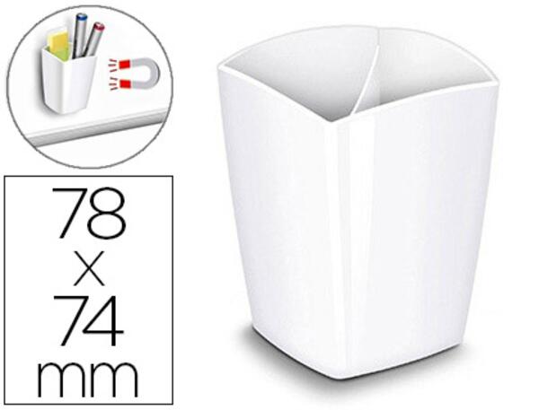 Pot à crayon magnétique avec 2 compartiments de la gamme Gloss. En polystyrène antichoc. Bonne stabilité. Dimensions : 74 x 74 x 95 mm.