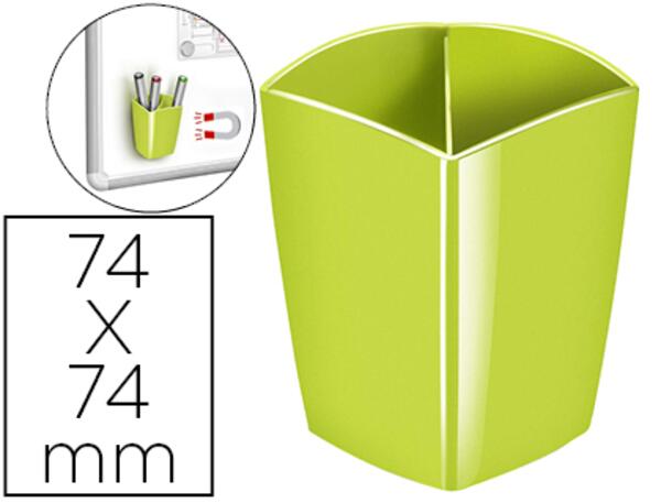 Pot à crayon magnétique avec 2 compartiments de la gamme Gloss. En polystyrène antichoc. Bonne stabilité. Dimensions : 74 x 74 x 95 mm.