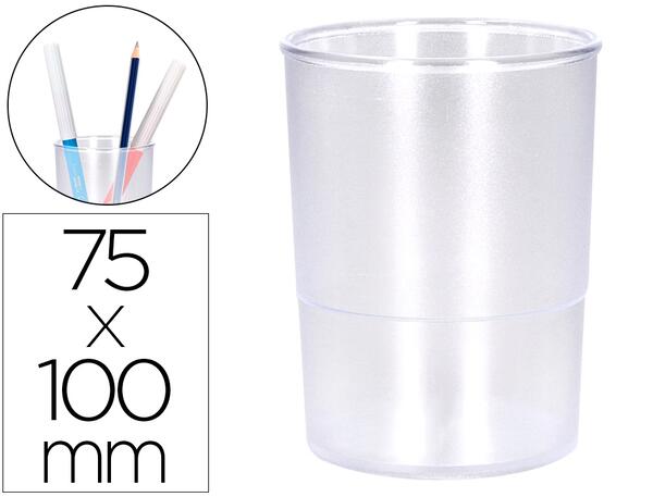Pot rond pour stylos, crayons, marqueurs. Fabriqué en plastique résistant. Couleurs opaques et translucides. Dimensions : Ø75 x 100 mm. Couleur transparente.