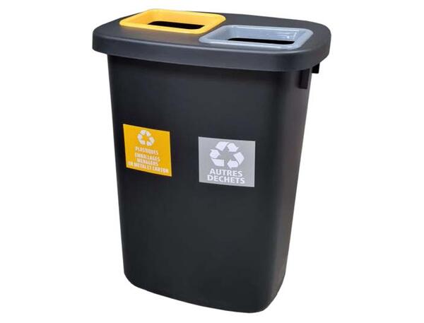 Poubelle rectangulaire de tri avec 2 seaux de 45L. Couvercle avec 2 ouvertures. Idéal pour collecter les déchets sans contact. Poubelle livrée avec 2 clips couleur et 2 étiquettes de tri à choisir selon la configuration souhaitée. Design, ergonomique, haute qualité.