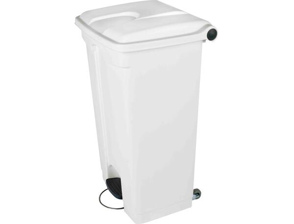 Résistante et facile à entretenir. Équipée d'une large pédale et de 2 roulettes de déplacement. Capacité 90 L. Dimensions : 500 x 790 x 400 mm.