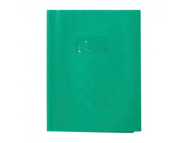 Protège-cahiers grain madras avec rabats marque-pages PVC 22/100ème 17x22 cm Vert. Porte-étiquette pour personnaliser le cahier. Rabats marque-pages pour marquer les pages. PVC opaque 22/100ème. Conforme à la Directive Européenne REACH. Conforme aux normes ROHS EN71.