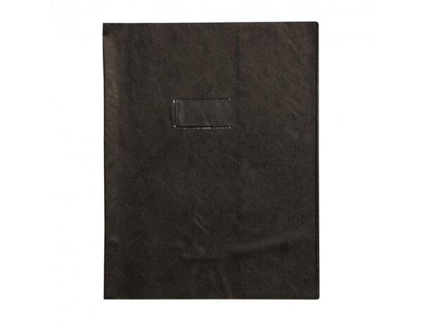 Protège-cahiers grain cuir PVC 22/100ème 24x32 cm Noir. Porte-étiquette pour personnaliser le cahier. PVC opaque 22/100ème. Conforme à la Directive Européenne REACH. Conforme aux normes ROHS EN71.