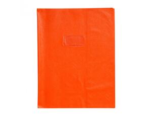 Protège-cahiers grain cuir PVC 22/100ème 24x32 cm Orange. Porte-étiquette pour personnaliser le cahier. PVC opaque 22/100ème. Conforme à la Directive Européenne REACH. Conforme aux normes ROHS EN71.