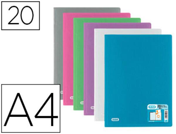 Couverture rigide en polypropylène 5/10ème transparent. Pochettes en polypropylène lisse antireflet et antistatique. Jeu de 4 intercalaires amovibles fournis avec la référence 19401. Format A4. Coloris aléatoire.