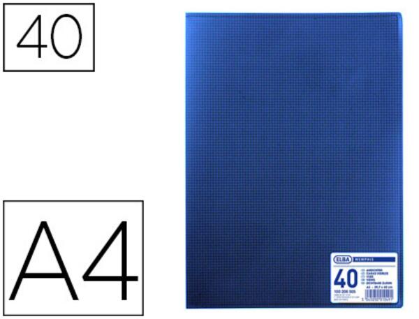 Couverture en polypropylène semi rigide 5/10ème. Grain structure satiné résistant et anti-trace. Pochettes intérieures lisses avec ouverture en angle. Pour une insertion facile des documents. Étiquette d'identification adhésive. Coloris assortis classiques et style. Coloris : Bleu', A4.