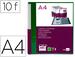 Fabriqué en polypropylène flexible, résistant et très léger. Comprend 10 pochettes au format A4. Disponibles dans des couleurs opaques ou translucides. Avec dos et couverture personnalisable. Couverture de 40/100ème. Pochettes de 4/100ème. Coloris vert translucide.