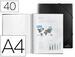 Protège-documents en polypropylène. Couverture rigide. Reliée avec spirale pour une plus grande commodité et fermeture avec élastique. Couverture 75/100ème. Pochettes fixes 7/100ème. Format A4. Coloris : Noir', 40 pochettes''.
