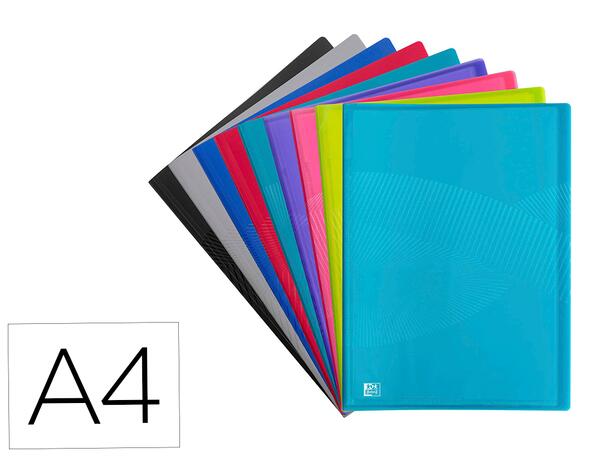 En polypropylène 5/10ème (sauf le code 78948 7/10ème), au grain à double spirale. Pochettes lisses avec ouverture en coin. Coloris : Coloris assortis opaques, A4.