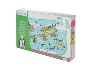 Découvrez les continents et pays avec ce puzzle planisphère ! D'une forme ovale et doté de 76 pièces fabriquées en carton épais, il saura ravir tous les explorateurs en herbe ! Dimensions puzzle : 56x40 cm.Poster servant de guide inclus.