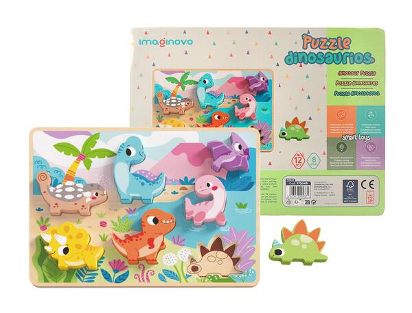 Puzzle en bois 3D Imaginovo dinosaures pour enfants est un jouet conçu pour les enfants de plus de 12 mois. Composé de 8 pièces aux dimensions de 29,5 x 22 x 1,7 cm, ce puzzle ne se contente pas d'amuser, il stimule aussi la créativité, la dextérité et le développement moteur des tout-petits. Fabriquées en bois durable avec des bords arrondis, les pièces sont sûres et faciles à manipuler. Les illustrations colorées et détaillées de dinosaures captivent l'attention et encouragent le développement cognitif et la coordination 'il-main.