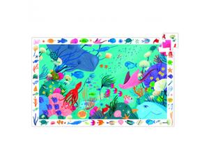 2 en 1 : puzzle et jeu d'observation. Sur le thème de la mer. Frise autour du puzzle différents objets à retrouver dans celui-ci. Contenu : 54 pièces et 1 poster modèle - Dim. du puzzle (L x l) : 61 x 38 cm