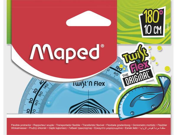 Le rapporteur Maped Twist'n'Flex 180 degrés est un outil idéal pour les écoliers et les étudiants qui recherchent un instrument de traçage durable et amusant. Conçu pour résister aux aléas d'un environnement scolaire actif, ce rapporteur combine flexibilité et un design attrayant pour une utilisation pratique et ludique.