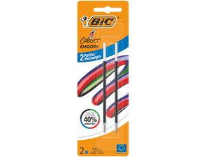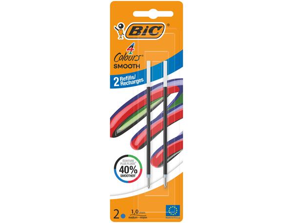 BIC 4 Couleurs SMOOTH' - encre ultra douce-Recharges pour Stylo-Bille Pointe Moyenne (1,0 mm) - Bleu, Blister de 2