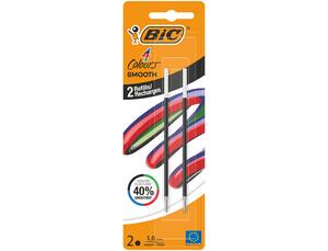 BIC 4 Couleurs SMOOTH- encre ultra douce- Recharges pour Stylo-Bille Pointe Moyenne (1,0 mm) - Noir, Blister de 2
