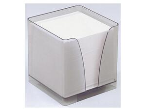 Bloc cube en plexiglas fumé avec encoche de préhension. 1 recharge 590 feuilles 80 g/m² incluse. Dimensions : 90 x 90 mm. Produit certifié PEFC.