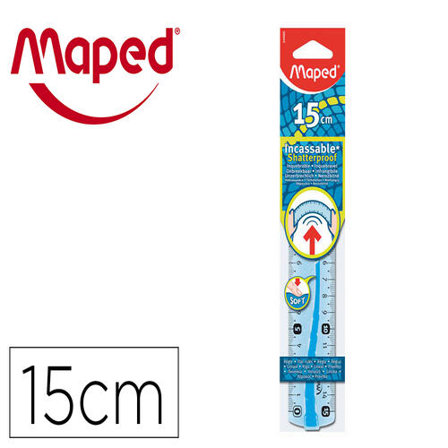 La règle plate incassable de 15 cm de Maped est l'accessoire idéal pour la prochaine rentrée scolaire ! Fabriquée en PET, un matériau 100% résistant aux chocs, elle est conçue pour supporter flexions, torsions et chocs sans se casser. Durable et pratique, cette règle est parfaite pour accompagner les enfants tout au long de leur scolarité et peut être facilement rangée dans un cartable surchargé. Disponible en coloris aléatoires bleu ou vert, elle est également respectueuse de l'environnement avec son packaging tout en carton recyclable.