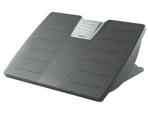 Repose-pieds ajustable par pression des pieds. Protection antibactérienne MICROBAN permettant de limiter la transpiration et les odeurs dues aux bactéries. Système de bascule d'avant en arrière pour stimuler la circulation sanguine des pieds et des jambes. Dimensions : 444 x 333 mm.