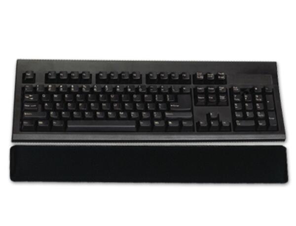 Repose-poignet pour clavier en gel recouvert de tissu pour plus de confort. Permet de soulager les douleurs dans les mains et les avant-bras lors d'une utilisation prolongée de l'ordinateur. Facilement nettoyable (livré sans clavier). Coloris noir. Dimensions : 499 x 79 x 22 mm.