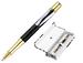 Roller corps en aluminium blanc avec des zébrures noires . Attributs or. Encre noire. Pointe 0,7 mm. Tracé 0,5 mm. Livré dans un élégant coffret cadeau avec fermeture magnétique.